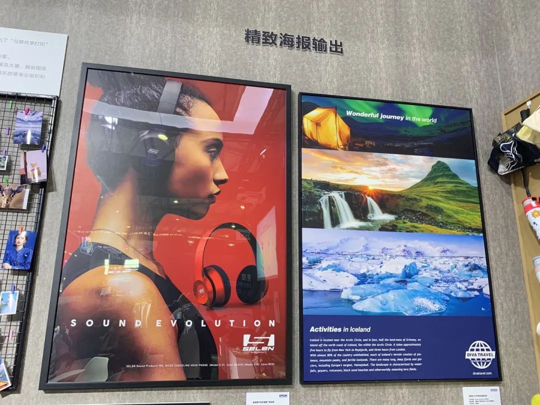 此次展出的愛普生SureColor S80680 大幅面微噴寫真機在廣告應用方案上表現十分出色,能夠在不同材質上打印高質量的廣告圖案。除了傳統廣告以外,車貼、墻紙等應用都能實現,能夠多維度滿足廣告展示需求。