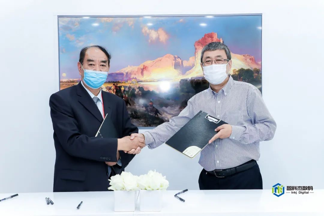 盈科杰總經理譚明(左)與無錫洋虹圖文印刷科技有限公司總經理蔡國正(右)