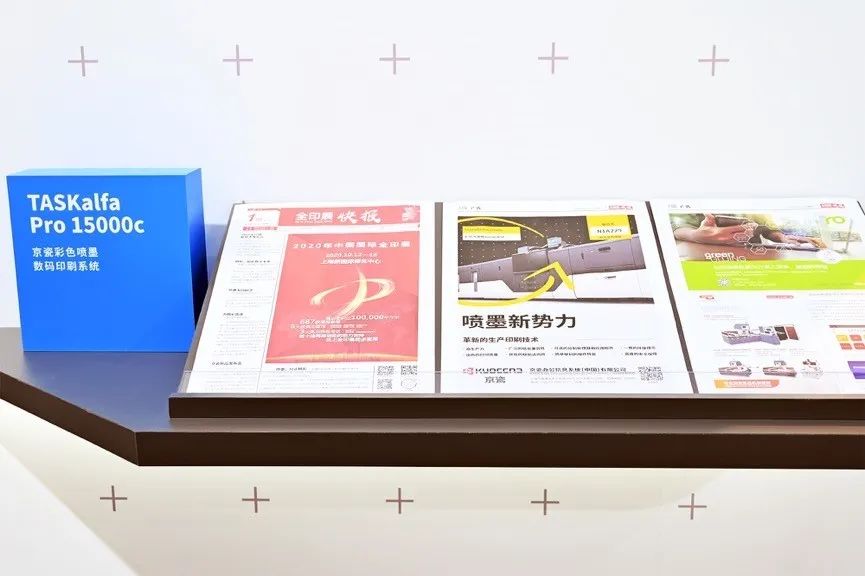 此次發布的京瓷TASKalfa Pro 15000c彩色噴墨數碼印刷系統今年剛剛布局亞洲市場,此次展會首次公開亮相。作為月負荷量可達百萬級的輕型印刷設備,這款機型主要面向數碼印刷行業中的短版印刷客戶群體。在本屆展會中,京瓷TASKalfa Pro 15000c彩色噴墨數碼印刷系統承擔了全印展日報打印輸出的工作,以實際應用方案展示其作為膠印或者輪轉設備的補充印量實力。配合京瓷自有技術打印頭以及水性顏料墨,出色地保障了高生產力下良好的圖像質量。