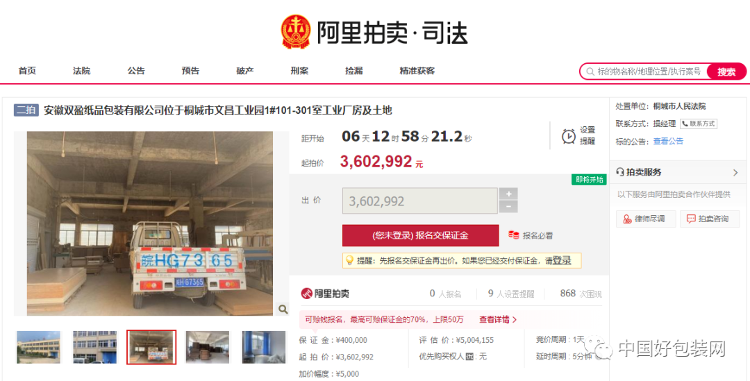 安徽一紙箱廠被法院拍賣,廠房及土地起拍價為360萬