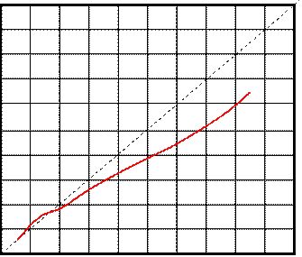 凹印如果以網點面積來計算的各層次擴張變化,可以參見圖8所示。15% 以前是貼近45°斜線的直線,15% 以后則下降到30°斜線,這說明網點面積逐漸縮小。凹印網點沒有臨界點,從小到大,逐步展開。凹印也沒有真正100% 的實地,因為在印刷過程中要擱住刮刀,凹版必須要有將網點有效分隔的網墻。我們現在看到的凹印實地,其實是電雕凹版的通溝所致。凹版的通溝隨不同網角出現在不同時段,30°在95% 處就會出現,45°次之,60°出現得最慢。