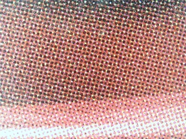 凹印所謂的暗調并級,其實就是60% 以后,相鄰網點的間隔變小,此時若油墨黏度過低,油墨干燥過慢,凹版網穴中的油墨在轉移過程中就會溢出,原本相鄰的網點就會互相侵蝕,會誤連接在一起。肉眼裸視該區域會出現原本不該有的發花,放大鏡觀察則很清晰地看到網點相連,也就是業界常說的跳階、并級,指的就是這個意思。
