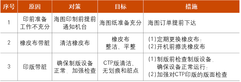 實施效果:此項措施實施后,能確保橡皮布的技術(shù)指標(biāo)符合海圖印制要求。橡皮布表面清潔程度得到提高,海圖質(zhì)量得到明顯提高,達到目標(biāo)要求。