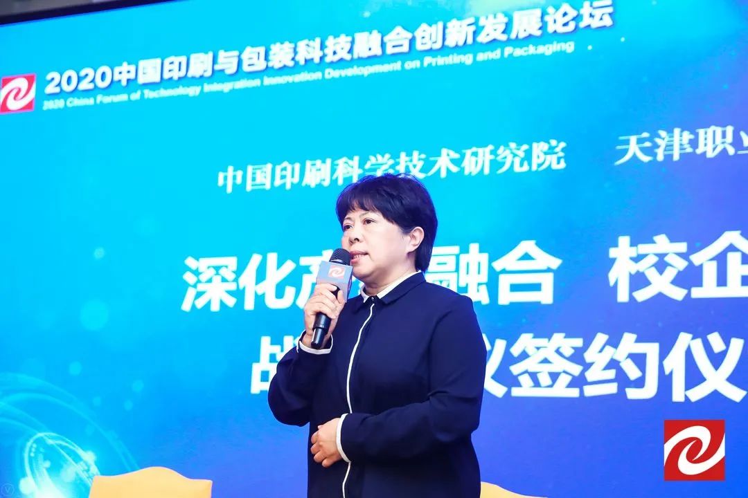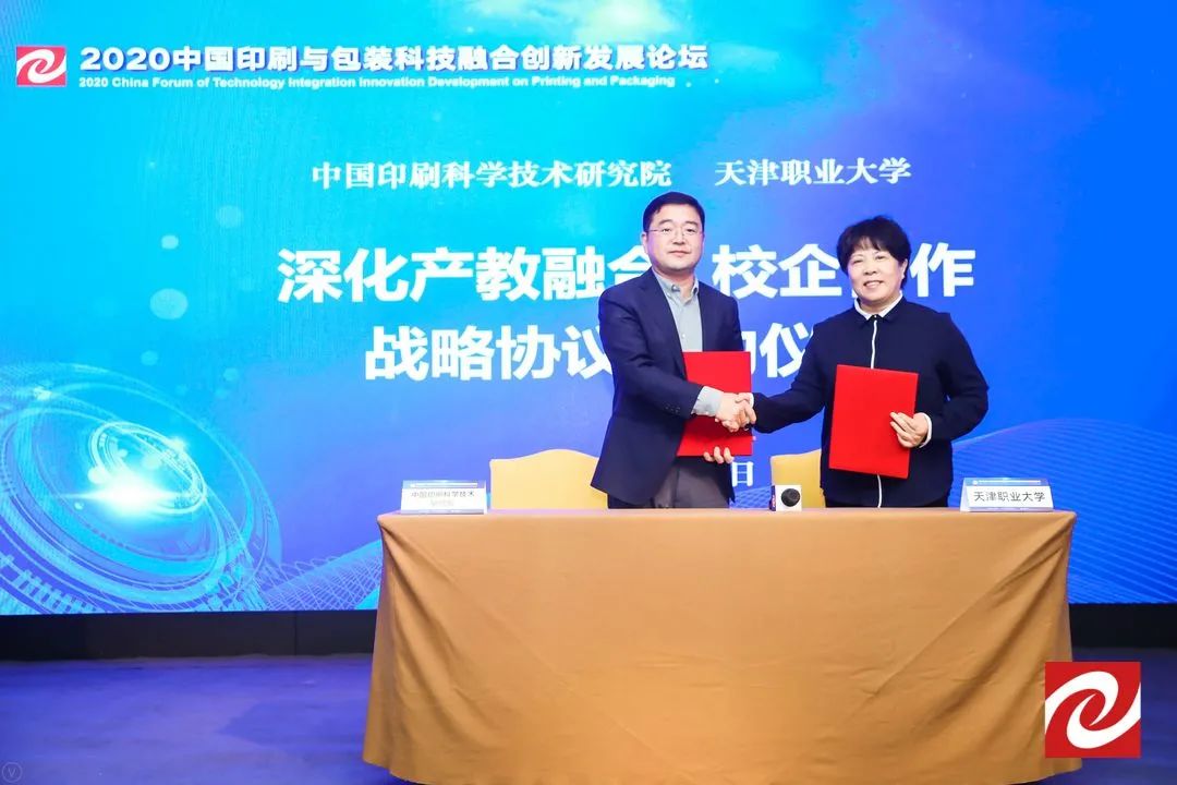 中國印刷科學技術研究院與天津職業大學的深化產教融合、校企合作戰略協議簽約儀式將活動推向高潮。中國印刷科學技術研究院院長趙鵬飛、天津職業大學副校長楊榮敏分別代表雙方簽定戰略協議。本次合作旨在根據產業鏈高質量發展需要,共同探索培養高質量技能型人才的職業教育模式。中印科院將依據自身優勢協助天津職大雙高建設工作中的行業企業人才需求調研、教學資源設計開發、技術創新研發、國際交流合作等服務和內容。楊榮敏副校長詳細介紹了天津職業大學的發展歷程和雙高建設工作情況,指出學校在設計高水平專業群建設中,定位于高端企業、智慧型企業的人才需求,適應產業升級,為國家的高質量發展戰略服務。趙鵬飛院長表示此次簽約也是向行業傳遞中印科院將會開啟基于教育的專項服務的信息,以更大的力量積極支持職業教育發展。