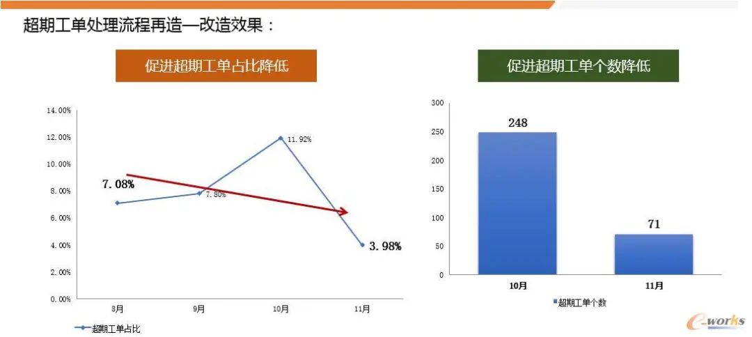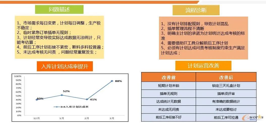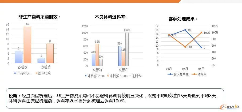 通過流程優化提升業務作業效率,可以看到需求計劃管理、超期工單管理、物料采購及補料管理等核心業務流程的優化情況: