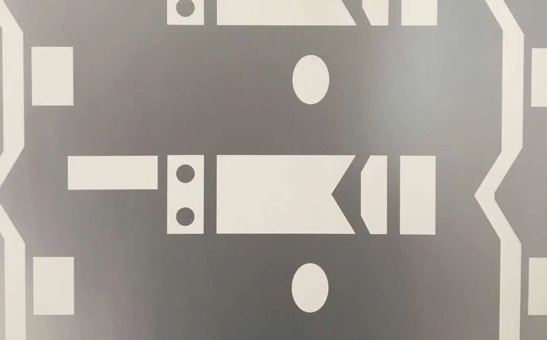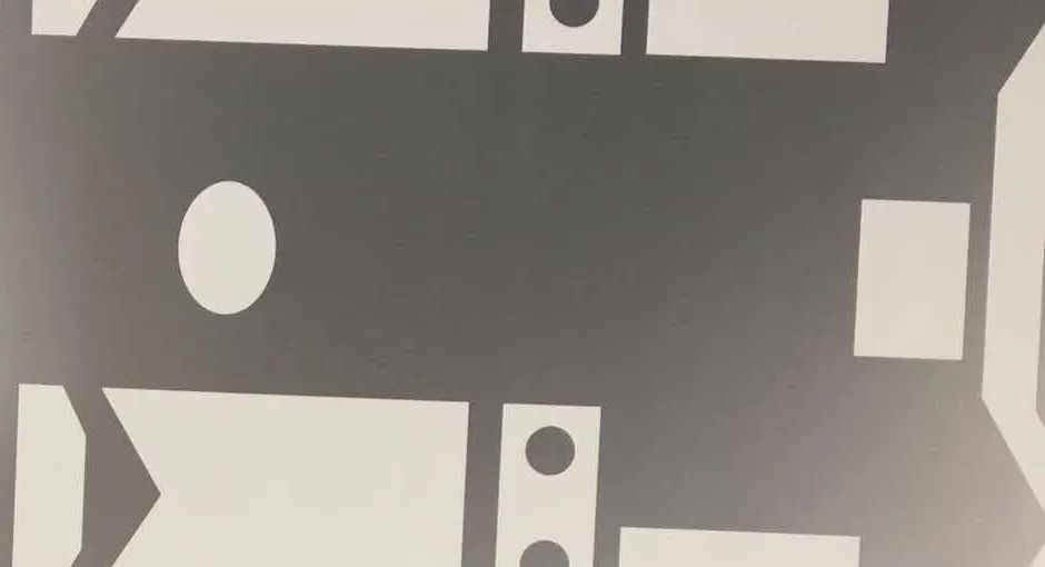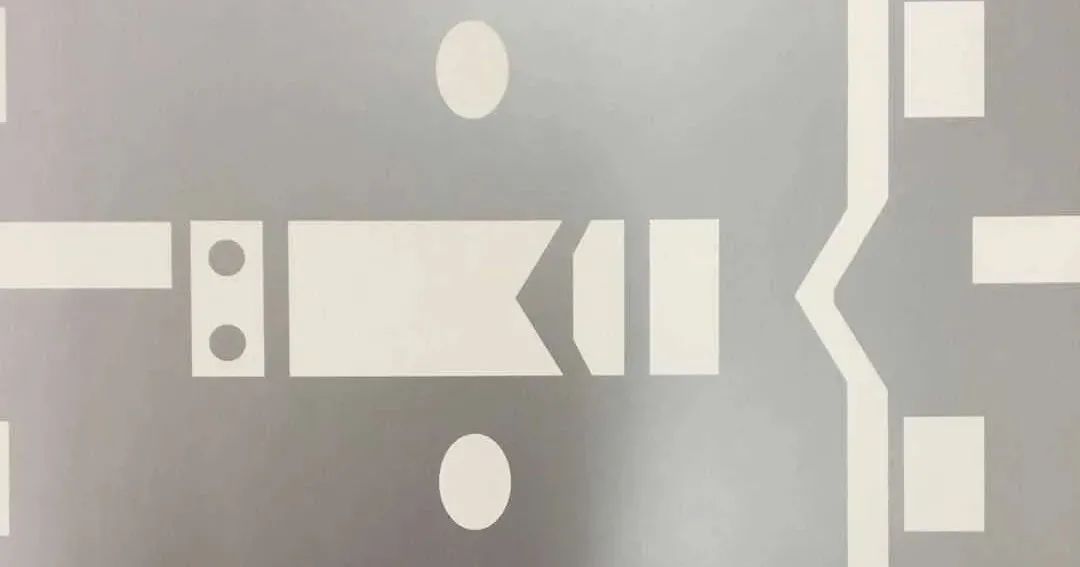 表1中的配比可以根據(jù)實際印刷效果的要求和工藝、設(shè)備的適應(yīng)性情況進行調(diào)整,如果是金墨或者其他金屬墨,則調(diào)整主要成分鋁為銅或?qū)?yīng)的金屬顏料,其中的連接料、助劑、溶劑、消泡劑、流平劑等成分比例則根據(jù)實際印刷效果的要求進行調(diào)整,正常滿版水性銀墨印刷效果如圖1(空白部分為涂布白卡紙的非圖文區(qū)域)。