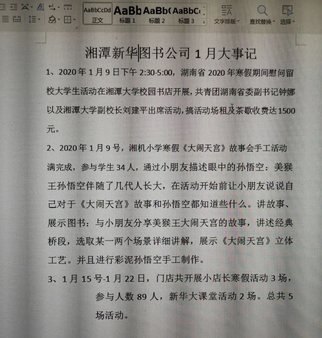 圖為湘潭市新華書店1月大事記