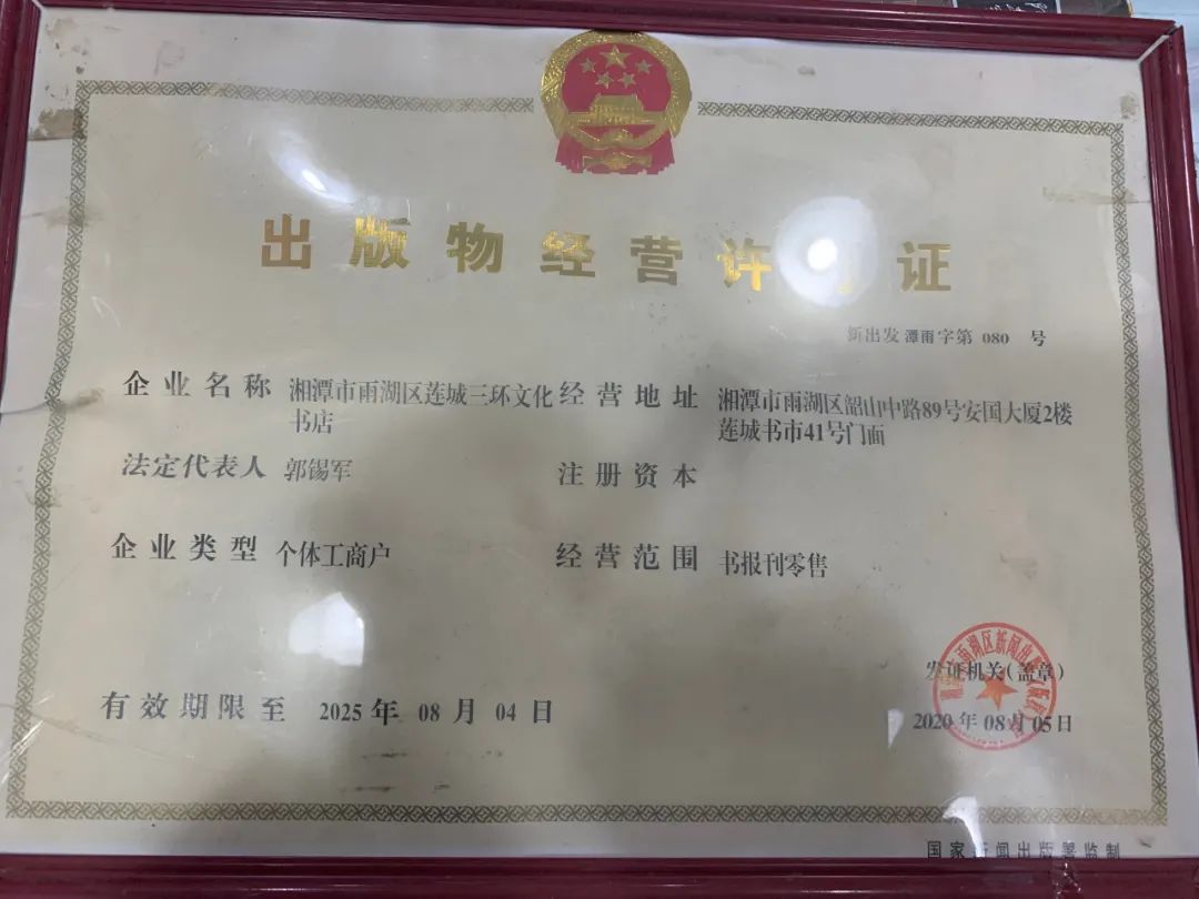 圖為該書店出版物經營許可證