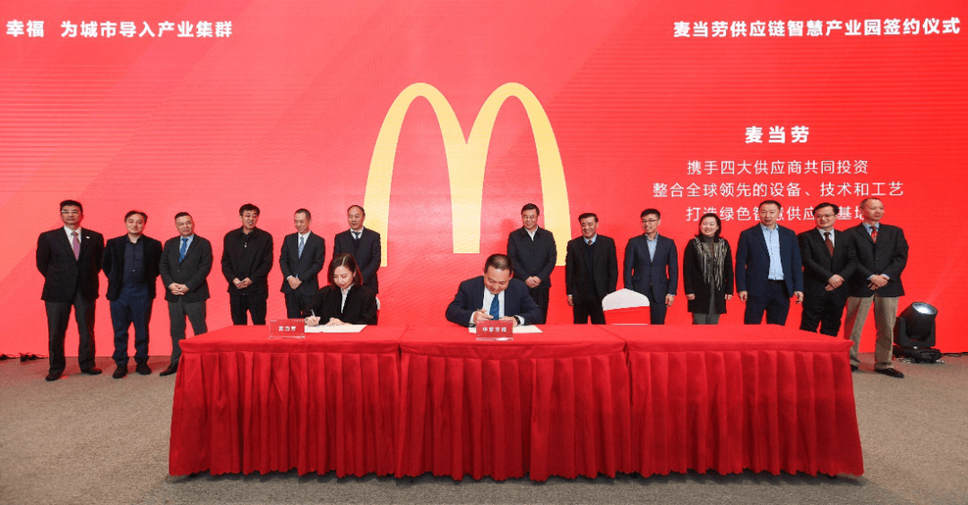 12月18日,麥當勞中國與四大供應商泰森、賓堡、新夏暉、紫丹一道與華夏幸福簽約,計劃投資15億元,在孝感打造麥當勞湖北供應鏈智慧產業園。