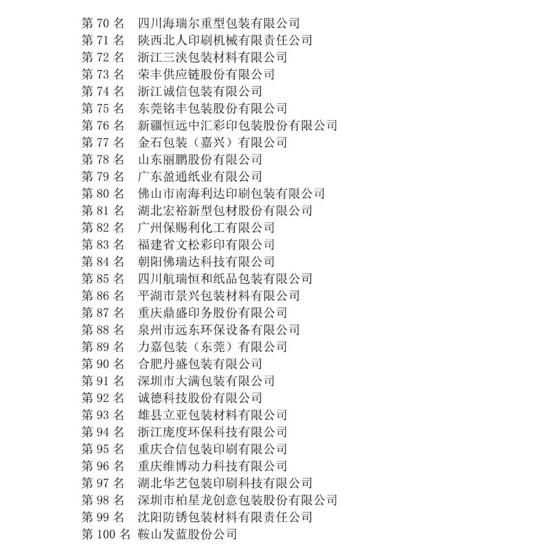 近日,中國包裝聯合會正式公布2019年度中國包裝行業百強名單!此份名單涵蓋紙包裝、軟包裝、金屬包裝、玻璃包裝等領域,其中紙包裝企業數量占據三分之一以上。