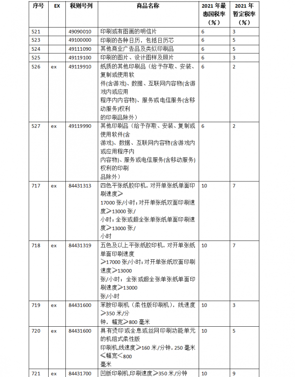 據粗略統計,883項商品中涉及到印刷行業的相關調整如下:
