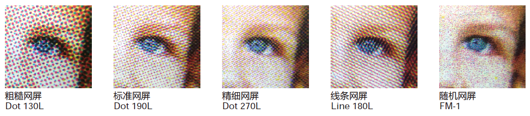 此外,為了保證印品的高質量輸出,相比其他設備單一的網屏技術,AccurioLabel 230可以同時提供12種網屏,其中包括6種點狀網屏,3種線狀網屏和3種隨機(FM)網屏,用戶可以根據實際用途和目的(如校樣輸出、相片打印和鬼紋抑制)選用不同的網屏。