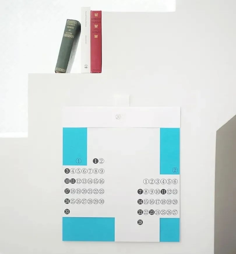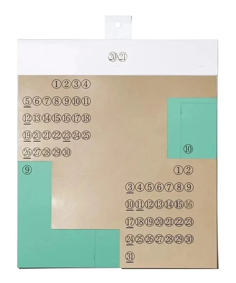 由日本知名設計師上原涼介設計,采用各種紋理紙張進行重疊,日歷中帶圓圈的數字,則用于闡明日期。日歷上整齊有序的字體,使整體視覺看起來很舒適。