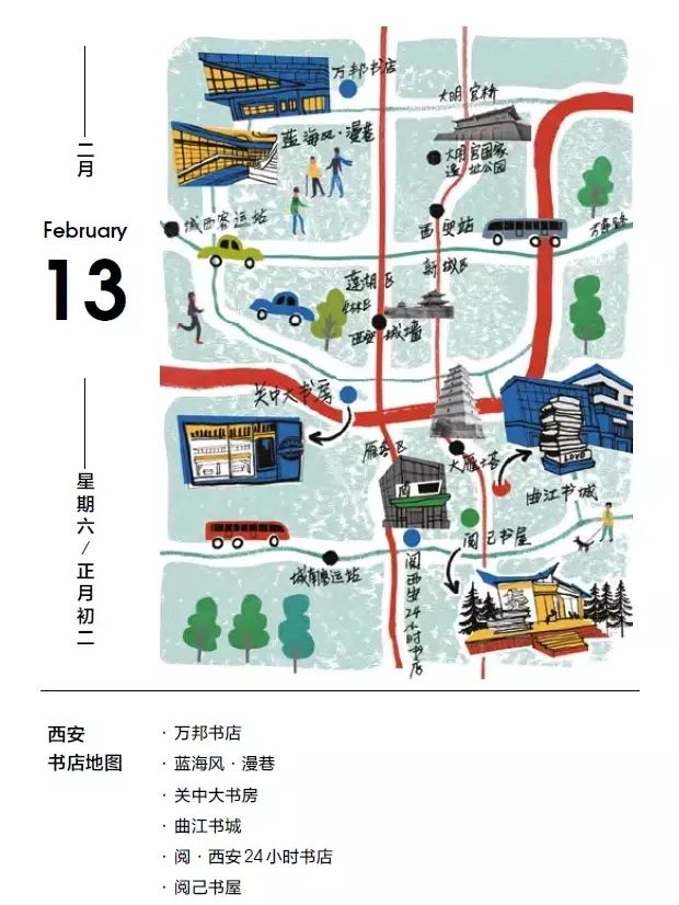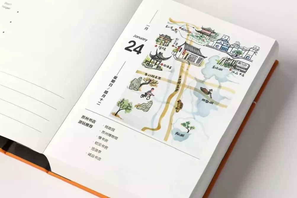 更為貼心的是,日歷中包含365幅原創插圖,85個書店故事,以及40多張手繪城市書店旅行地圖。甚至提供了40多座城市的書店旅行攻略,供書店迷旅行時參考。
