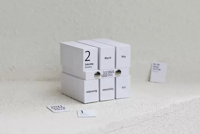 PAPIER LABO.推出的2021桌面日歷是一款可以體現印刷工藝,還以活版印刷印刻出紋理的日歷。這款產品還很迷你版,只有巴掌大小,可以通過搭配定制的架子,將它放在書桌上做臺歷使用。