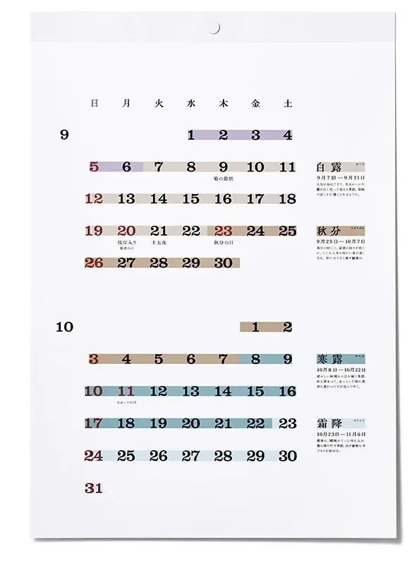 2021年版的二十四節氣日歷由小山麻子設計,著力展現了日本豐富的四季變化,其顏色也隨著季節的變化逐漸明亮。