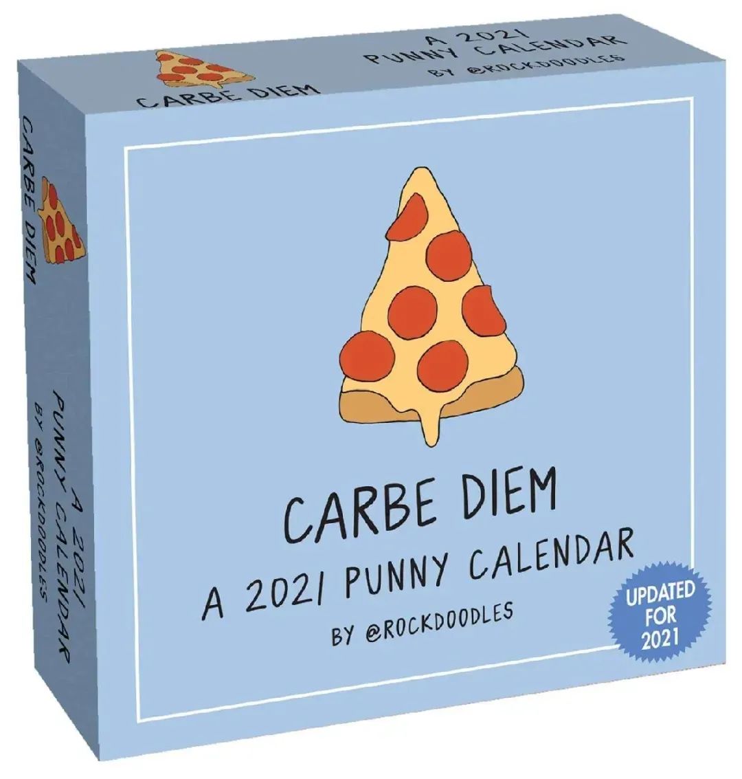 《A 2021 Punny Day-to-Day Calendar:Carbe Diem》是由插畫家Julia Rockowitz創立的插畫品牌rockdoodles 出品,Rockowitz從2017年開始就在她的社交平臺Instagram上分享自己的插畫作品,并得到了《大都會》雜志的關注和連載。