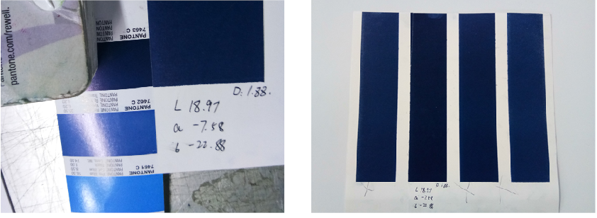 (8)固定印樣密度,酌情微調(diào)油墨配方,使印樣與客樣色差達(dá)標(biāo)。
