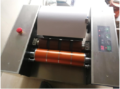 在印刷機(jī)顏色穩(wěn)定的情況下,抽取一張樣張,測(cè)量并記錄其密度和Lab值,作為后續(xù)對(duì)比數(shù)據(jù)。而后,從正在使用的墨斗內(nèi)提取油墨少許,作為展色儀(如圖1)展色時(shí)的原墨,并使用與剛才印刷樣張相同的紙張,在展色儀上進(jìn)行不同密度展色,通過對(duì)展色樣張(如圖2)不同密度和色度的測(cè)量,記錄數(shù)據(jù)如表1。
