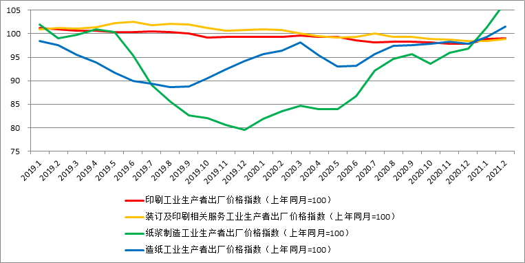 相比之下,印刷工業(yè)生產(chǎn)者出廠價格指數(shù)、裝訂及印刷相關(guān)服務(wù)價格指數(shù)提升幅度非常有限,無法抵消紙價漲幅帶來的成本上漲。