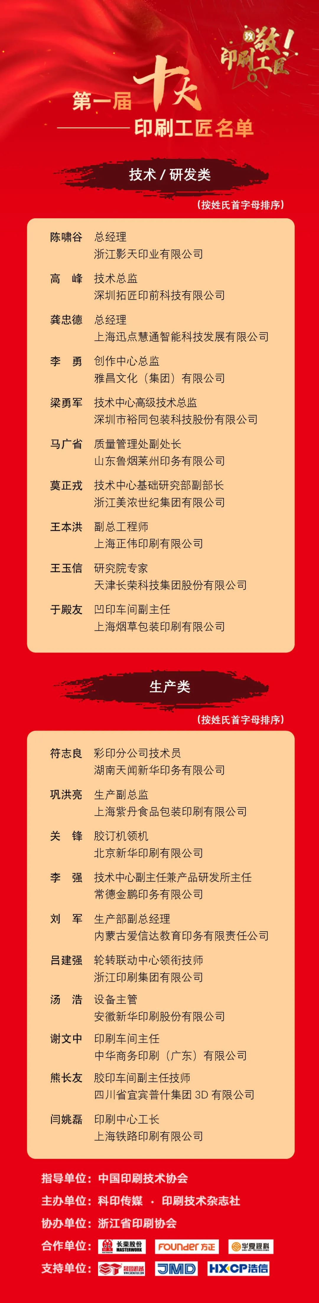 為在業內大力弘揚工匠精神,有效引導行業、企業重視技能人才,推動產業人才隊伍建設,為印刷業高質量可持續發展貢獻力量,科印傳媒《印刷技術》雜志社于2021年面向印刷全產業鏈啟動了“致敬!印刷工匠——十大印刷工匠評選”活動,受到了全行業的廣泛關注,今日第一屆十大印刷工匠名單正式揭曉,中國國際全印展邀您共同關注。