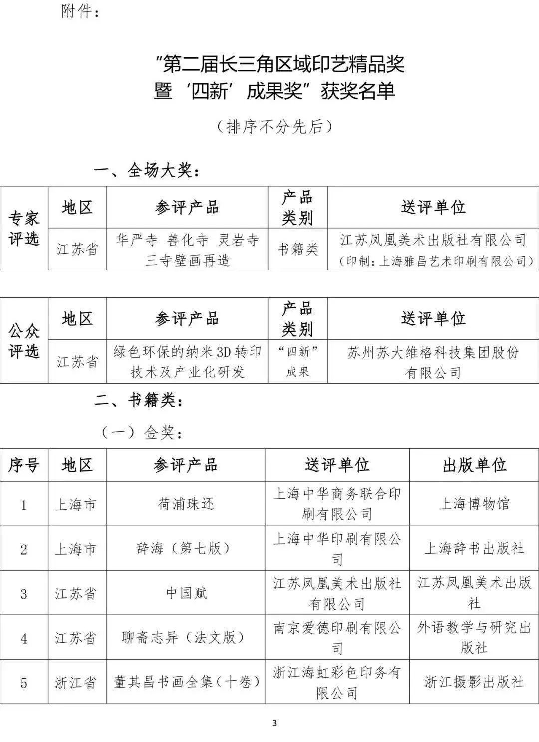 由中國印刷技術協會指導、上海市委宣傳部印刷發行處支持,滬蘇浙皖三省一市印刷協會共同主辦的第二屆長三角區域印藝精品獎暨“四新”成果獎評選結果發布,共有來自上海、江蘇、浙江和安徽等省(市)的338件印藝作品參評。