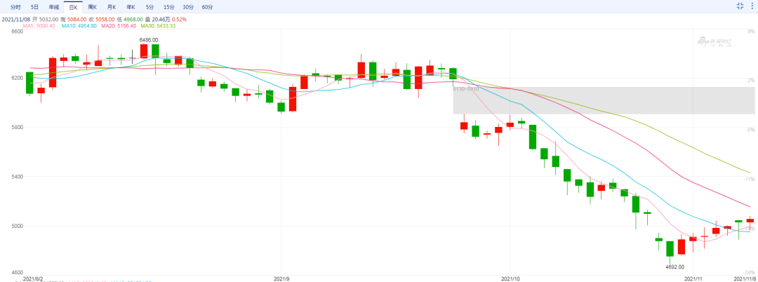截至11月8日收盤,上期所紙漿期貨主力合約報5058元/噸。