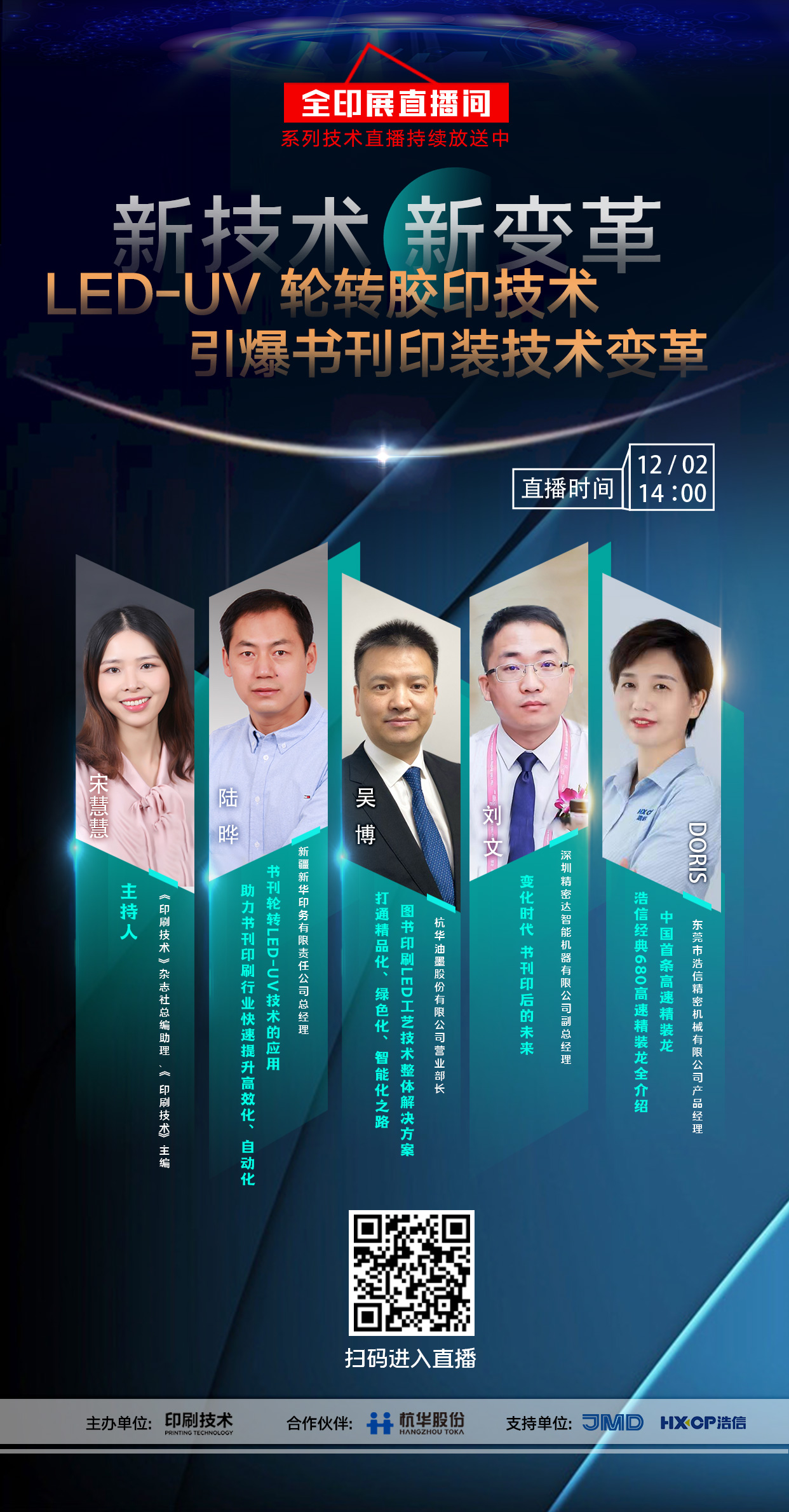 LED-UV技術備受關注,為此,全印展直播間特別攜手《印刷技術》雜志,圍繞“LED-UV輪轉膠印技術”開設線上直播,為您介紹LED-UV技術在輪轉膠印上應用的最新進展。