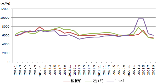 圖8 2017-2021紙價曲線圖