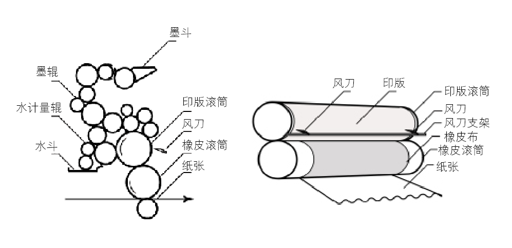 解決方法:在印版上水量大的位置的版輥位置安裝風刀,對準印版空白位置吹入壓縮空氣,加快水量揮發,從而達到減少局部上水量過大的目的。