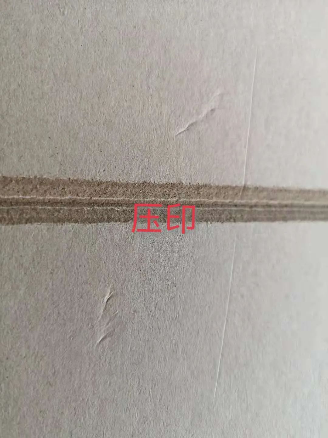 壓印,是指裱糊完成后,在盒子表面出現不規則、無規律且大小不等的痕印,大部分表現為凹陷的一條直線、淺坑或放射狀線條,這些形狀各異的凹陷,鑲嵌在盒體表面,嚴重影響產品整體效果,特別是在深色或全黑色設計的包料表面尤為醒目,產品表面只要出現壓印,這個部件即告報廢,給企業造成巨大浪費。