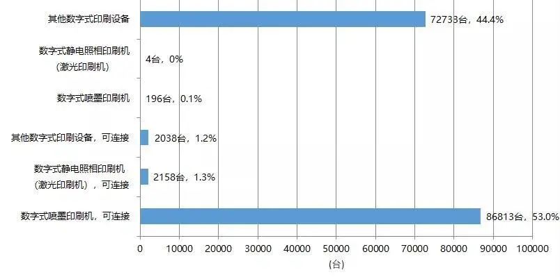 從圖22可以看出,“數字式噴墨印刷機,可連接”進口量最大,占比為53.0%,是當前我國數字印刷機進口主流。