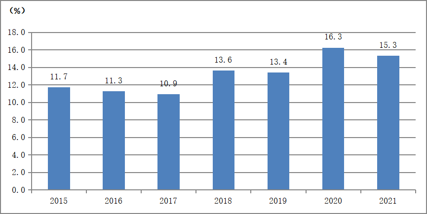 表2 2013-2021年部分行業主營業務收入增長率