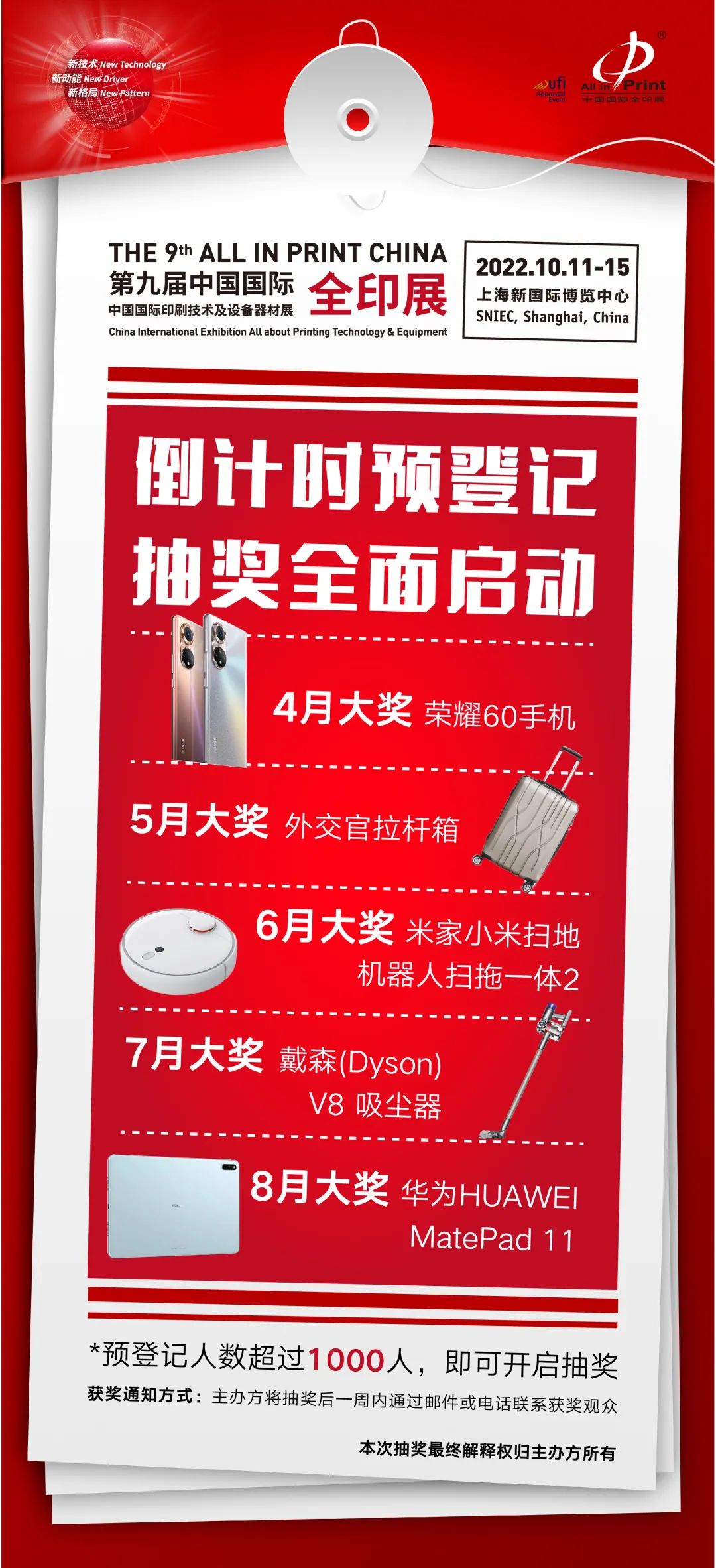 4月起,全印展將正式啟動預(yù)登記觀眾的抽獎活動,月月有驚喜,月月有大獎。先到先得!