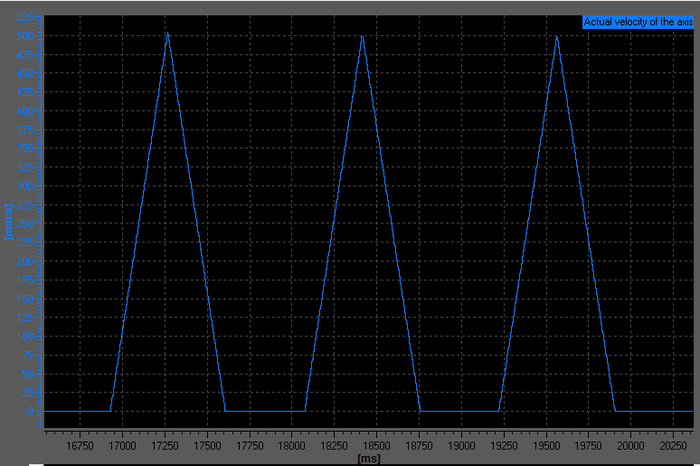 ④設(shè)定從軸在設(shè)備生產(chǎn)速度為3100S/h時(shí),跳步輥勻跳三小步,每次一格,每格長(zhǎng)度75mm的運(yùn)動(dòng)曲線,如圖7所示。