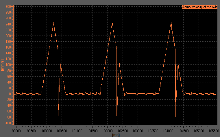 圖4 當(dāng)V生=1800S/h時(shí) ,測(cè)得V主=245mm/s