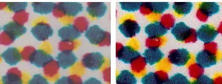 圖4 傳統(tǒng)膠印與無水膠印網(wǎng)點對比(左為傳統(tǒng)膠印網(wǎng)點,右為無水膠印網(wǎng)點)