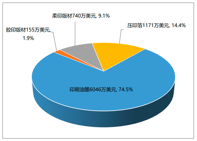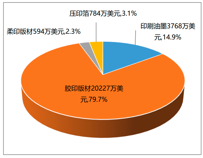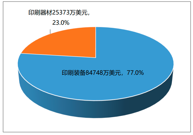 從細分商品來看,膠印機、印刷油墨、數字印刷機是進口額占比較大的三類商品,進口額占比分別為29.2%、10.3%和9.3%。