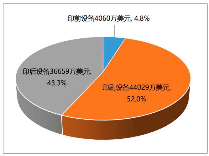 2022年1~3月,印前設備出口額降幅高達兩位數,為37.1%,是各類印刷裝備中出口額唯一實現下降的品類,如圖28所示。