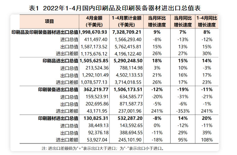 2022年1-4月國內印刷品、印刷裝備、印刷器材進出口貿易順差進一步擴大