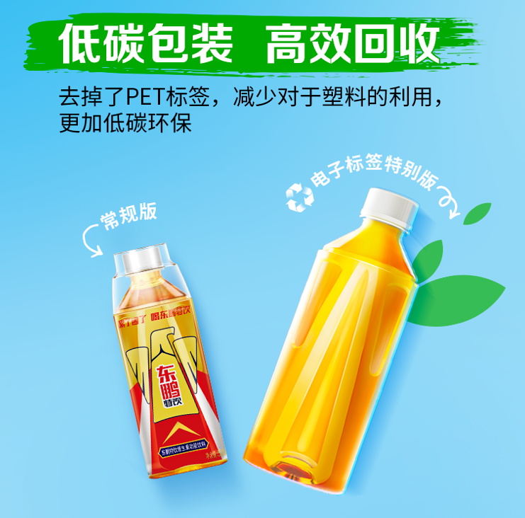 在國內,東鵬特飲是繼康師傅、百事可樂之后第3個嘗試推出無標簽產品的企業據了解,康師傅、百事可樂在今年2月、4月先后推出無標簽產品,而電子標簽版的經典瓶裝東鵬特飲將從6月起,在電商渠道以整箱(24瓶/箱)售賣。(從這3大品牌發布的節奏來看,2個月就有一款“無標簽”產品出來呀,8月份會不會又一品牌給我們送驚喜呢,期待ing