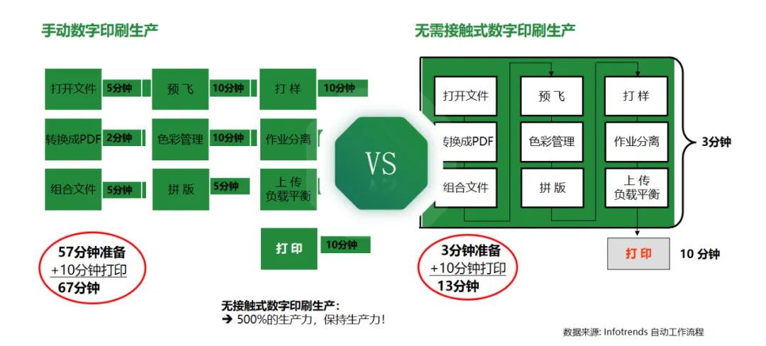 柯尼卡美能達(dá)提供的“從手動到無接觸式數(shù)字印刷生產(chǎn)流程”,直接表明:無接觸式數(shù)字印刷生產(chǎn)比傳統(tǒng)手動提升500%的生產(chǎn)力!