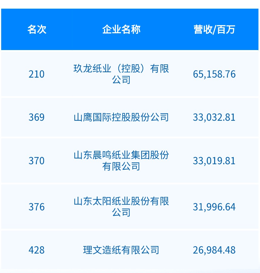 2022年《財富》中國500強揭曉,多家造紙企業上榜
