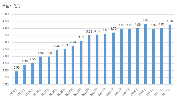 2021年是“十四五”開局之年,《印刷業“十四五”時期發展專項規劃》提出到“十四五”時期末,印刷業總產值超過1.5萬億元,印刷業向高質量發展方向邁進。與此同時,經歷了2020年的“疫情低迷期”后,2021年印刷市場強勢反彈,首先表現在百強進榜門檻上。本屆百強榜單門檻為4.26億元,見圖1。相比去年,今年的百強門檻有了較大提升,增幅超過6.23%,成為20年來繼2019年4.34億后的第二高峰。