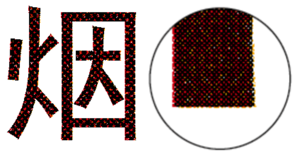 由于咖啡色是由黑色、紅色、黃色三色網點疊印而成的,紅色、黃色油墨色相相對偏弱,因此可以利用黑色做實地描邊處理,這樣就能遮蓋其他顏色網點虛邊,如圖2所示。