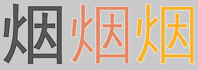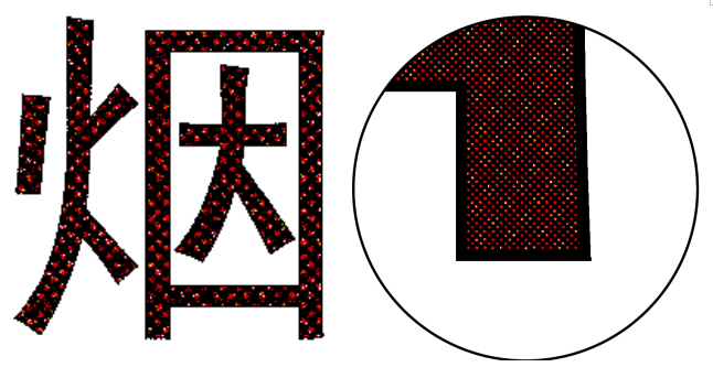 以我公司某款煙包產品為例進行說明,該產品有八個色,分別為底黃、橘黃、黑、藍、紅、黃、專咖啡、專金色,使用海德堡七色膠印機需要分兩次印刷。如果將專咖啡色用四色疊印代替,可以減少一個色組,改進后實現一次印刷。但在專咖啡色改四色疊印過程中,套印虛邊問題隨之出現,如圖1所示。