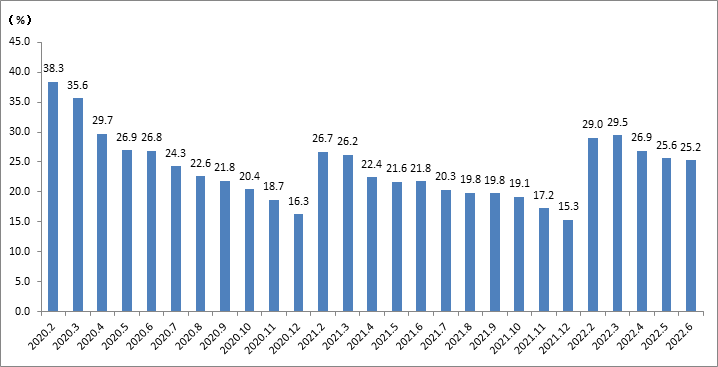 2022年6月,印刷業(yè)規(guī)模以上企業(yè)的虧損面為25.2%,虧損企業(yè)的虧損總額增長了29.3%。連續(xù)兩月,虧損面、虧損總額均有所減少。但由圖3中可以看出,今年以來各月虧損面,相比去年同期,均有相當幅度的抬高。
