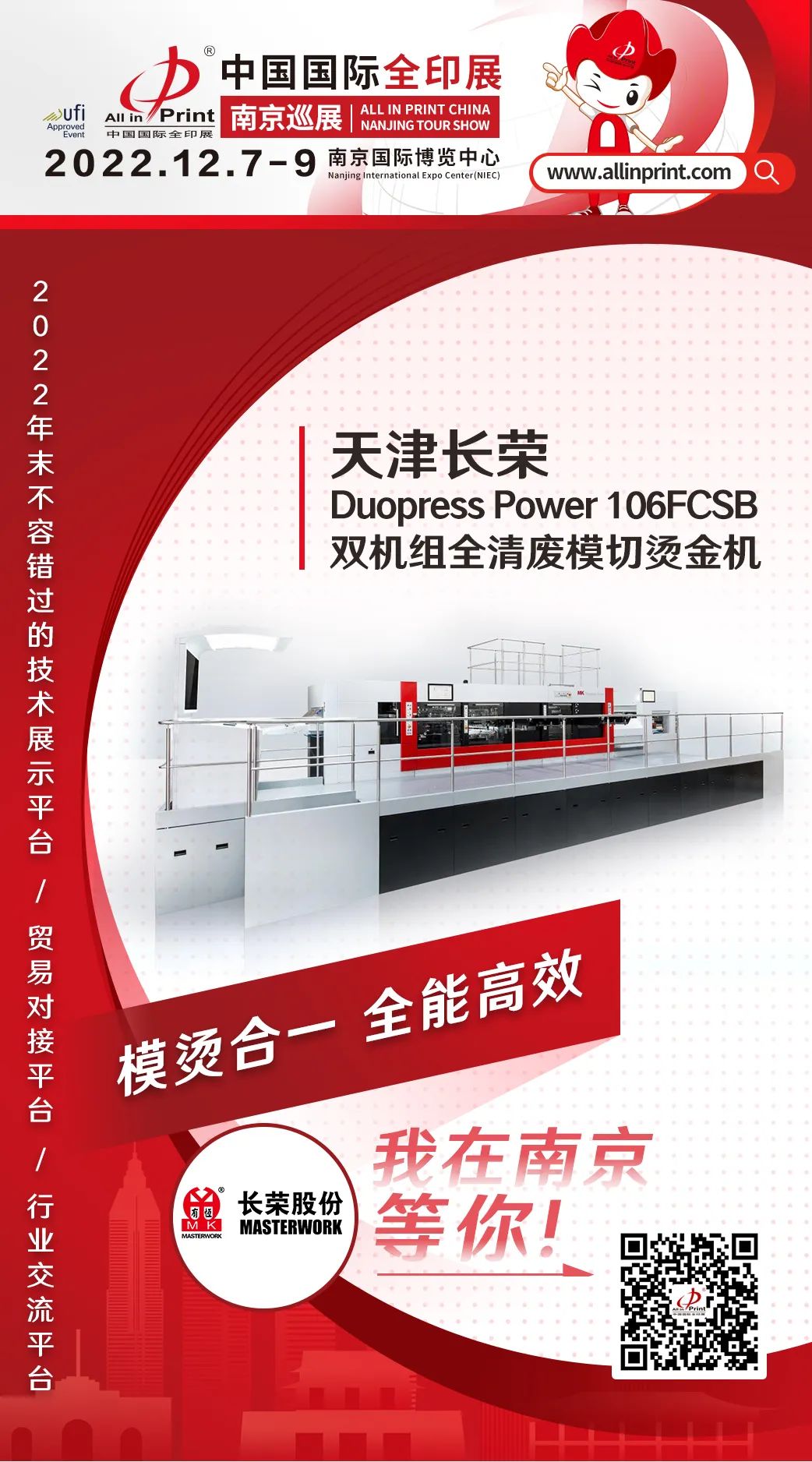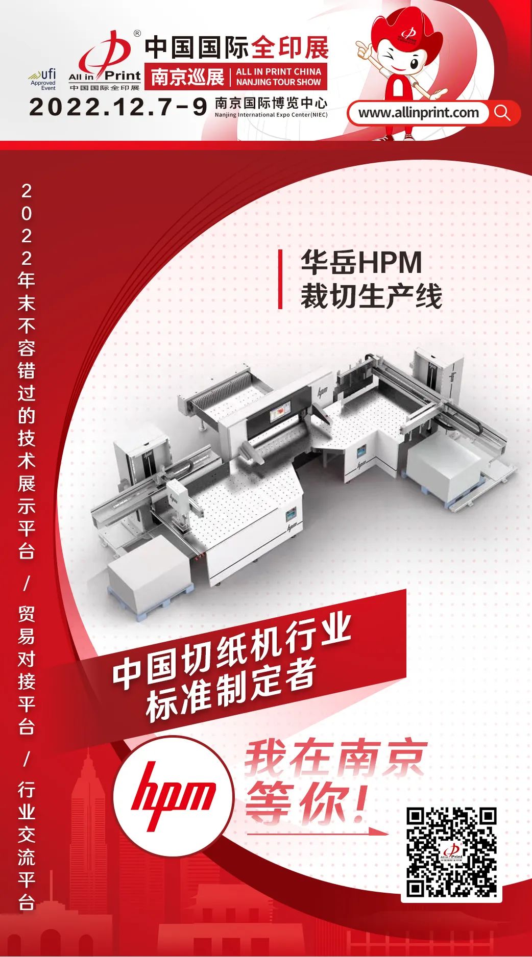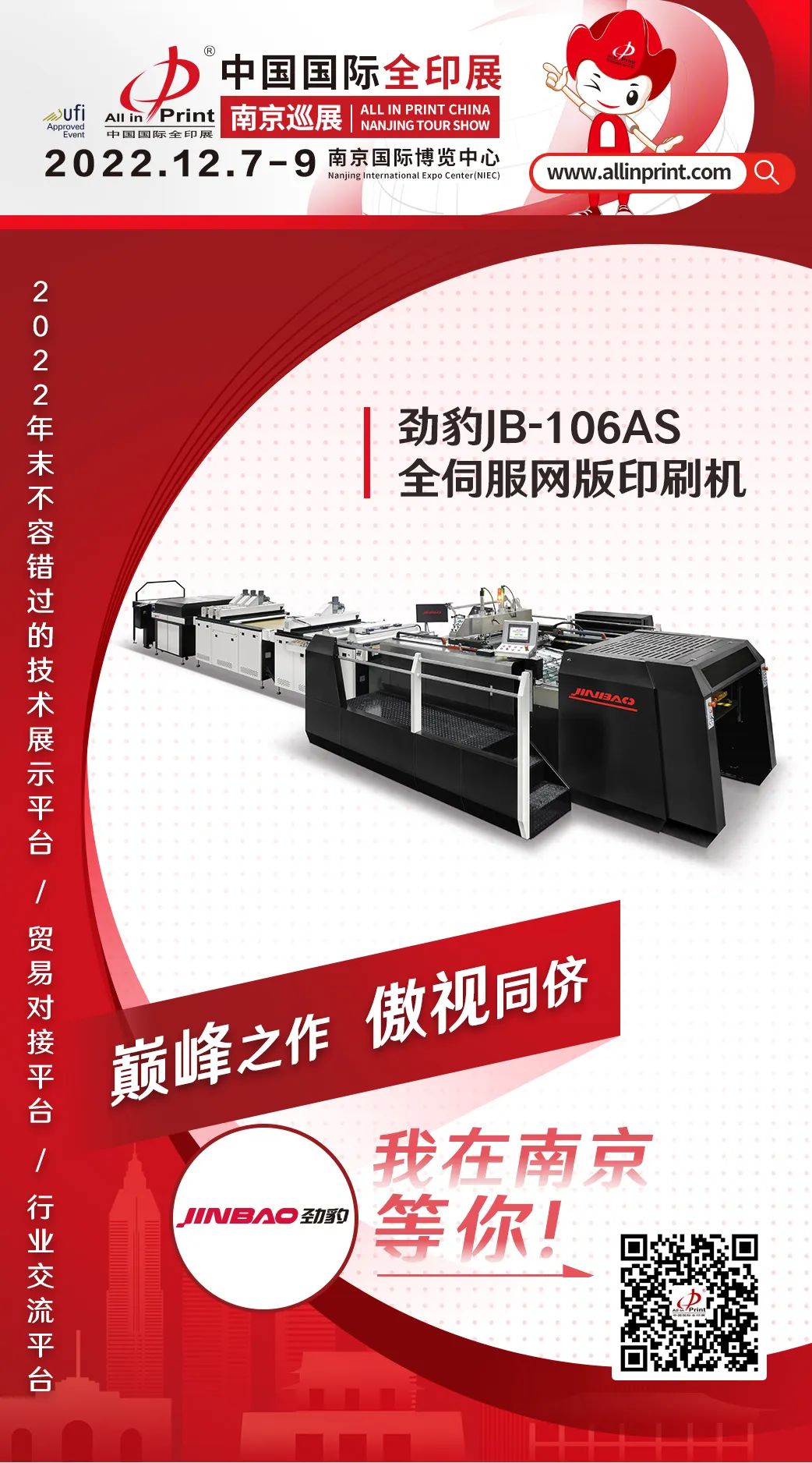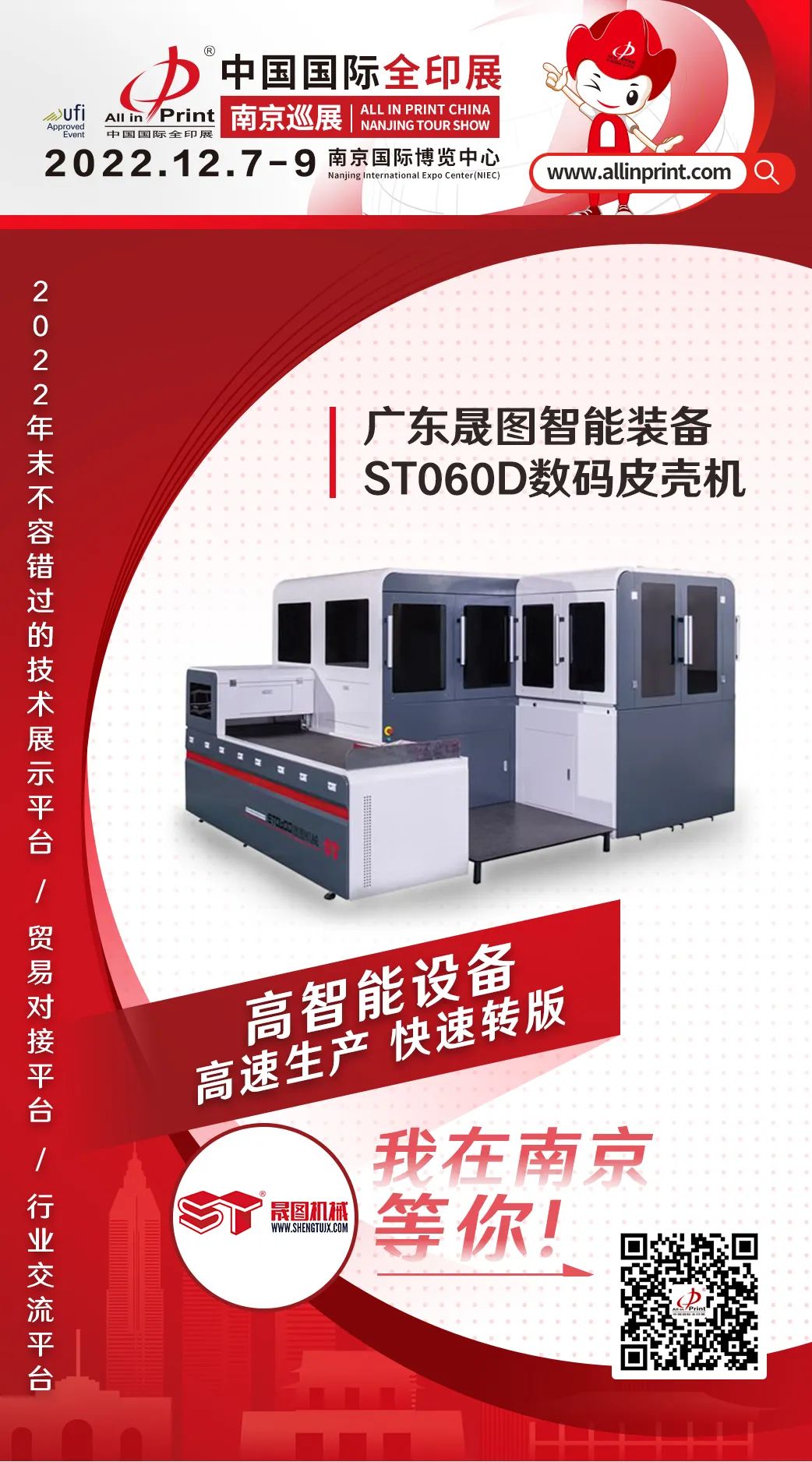 中國國際全印展南京巡展12月7-9日南京國際博覽中心舉行,立足華東,輻射全國,攜手印刷包裝行業優質展商,重點展示2022年度企業創新科技成果,共同推動行業的發展和破局
