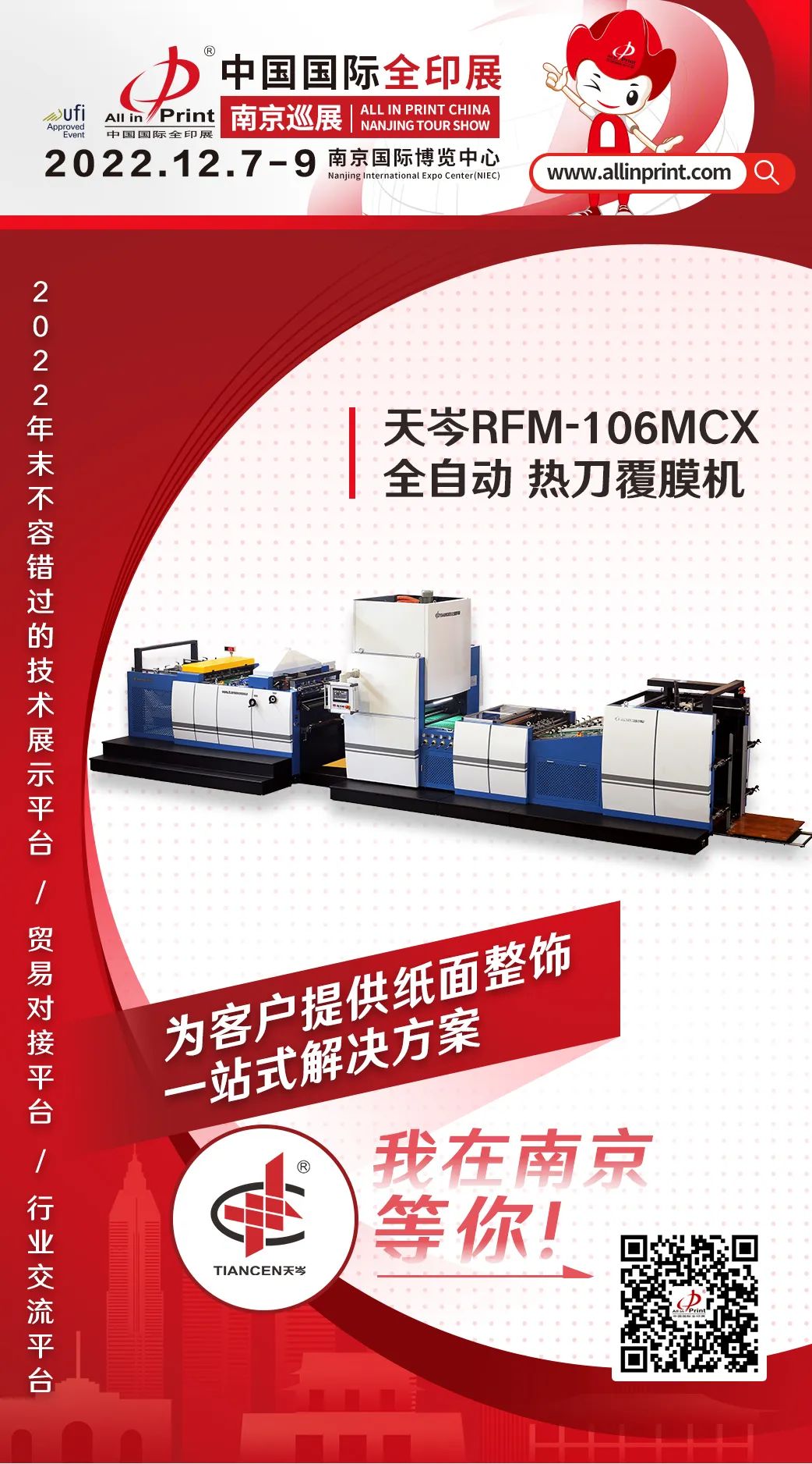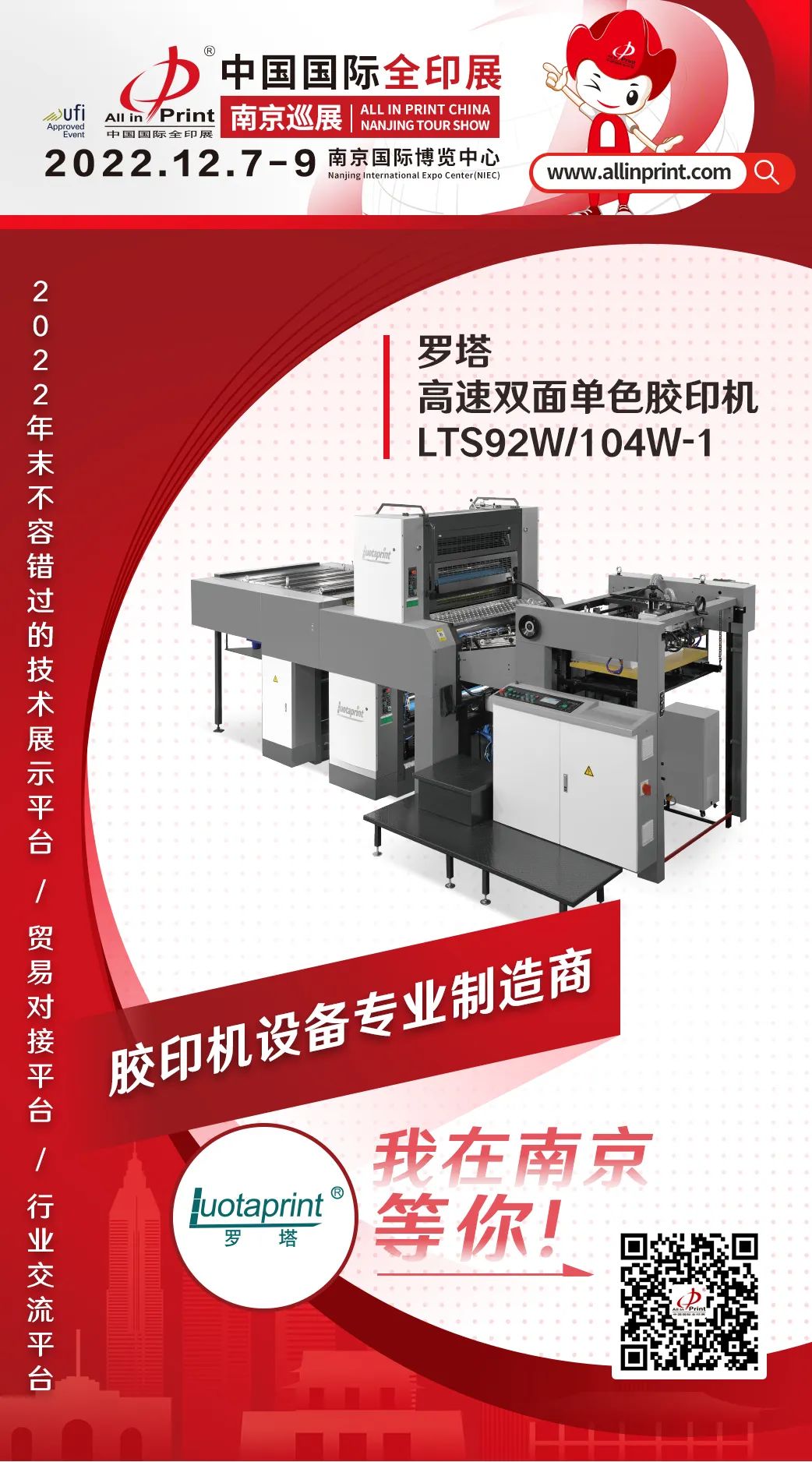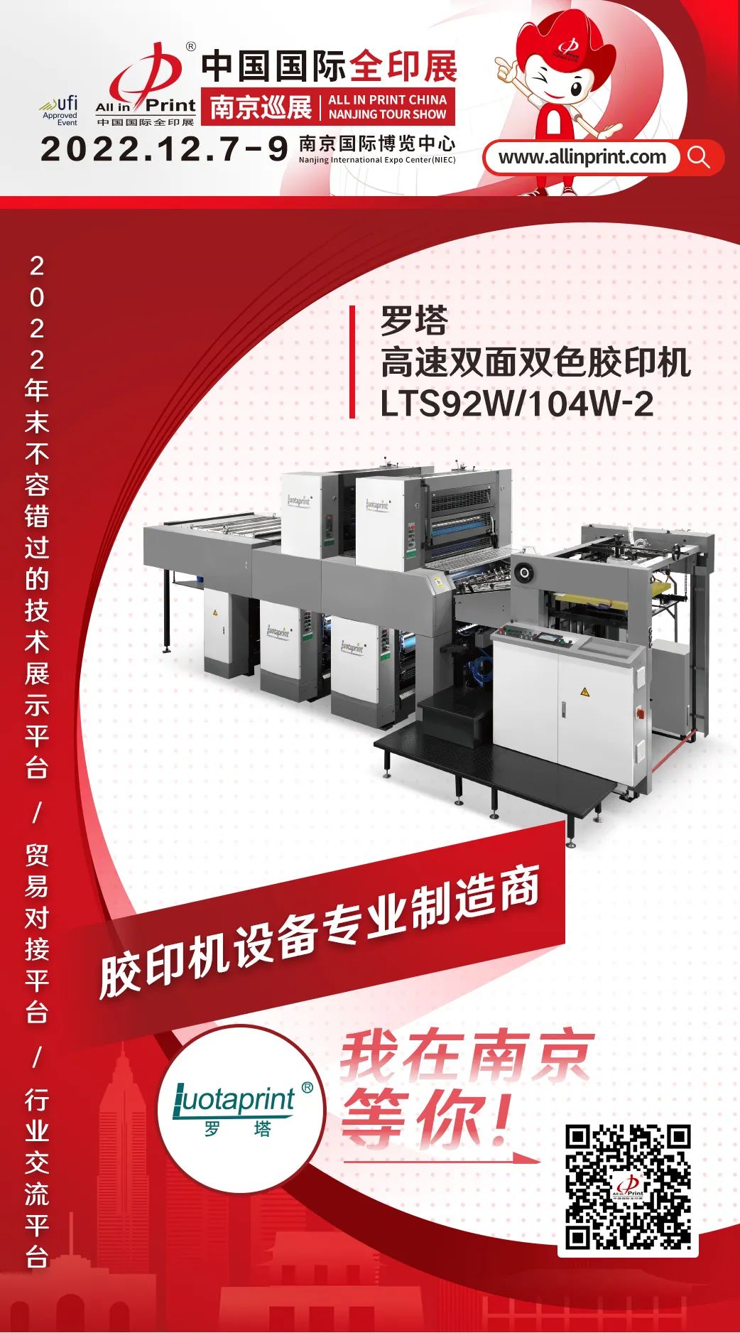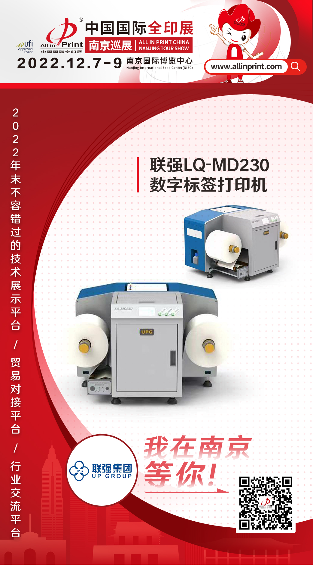 中國國際全印展南京巡展12月7-9日南京國際博覽中心舉行,立足華東,輻射全國,攜手印刷包裝行業優質展商,重點展示2022年度企業創新科技成果,共同推動行業的發展和破局