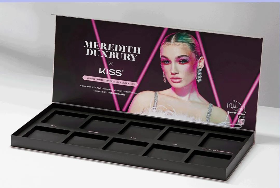 Meredith Duxbury×KISS禮盒,外觀采用特種印刷工藝,打造出猶如網格般的效果,觸摸時可以感受到鉆石般的肌理感,在燈光下呈現奢華閃耀的視覺盛宴。